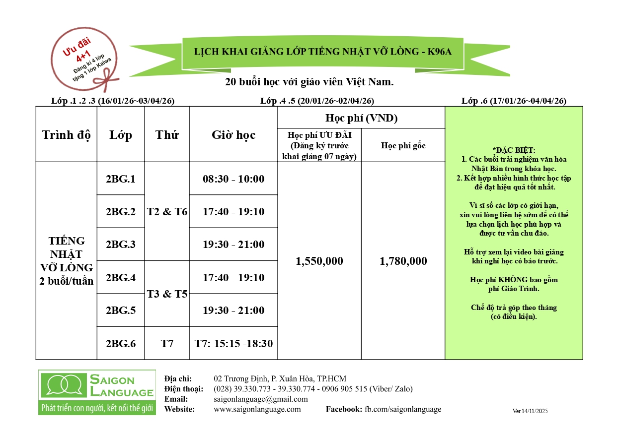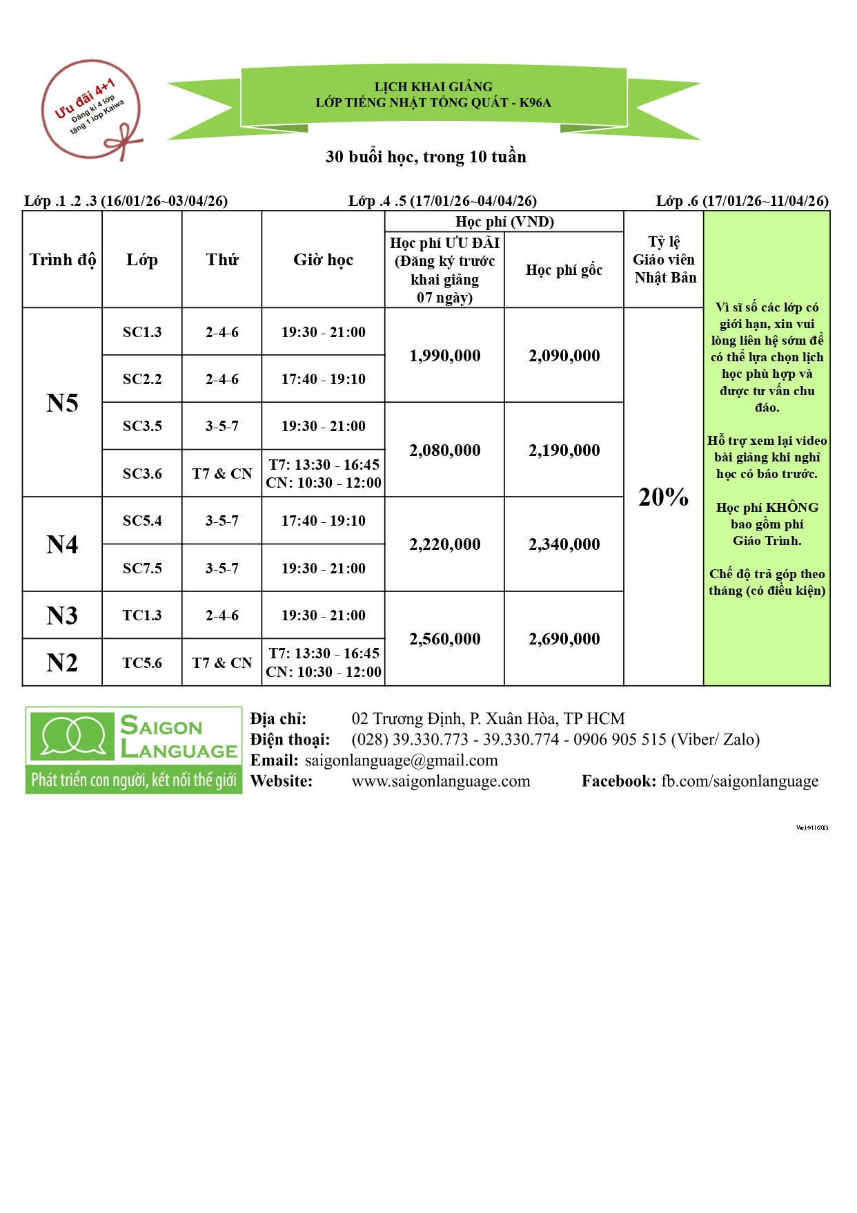 Khai giảng lớp Tiếng Nhật K96A (16,17 & 20/1/2026)(2, 3& 8/3/2026) TIẾNG NHẬT VỠ LÒNG, Sơ cấp,Trung cấp
