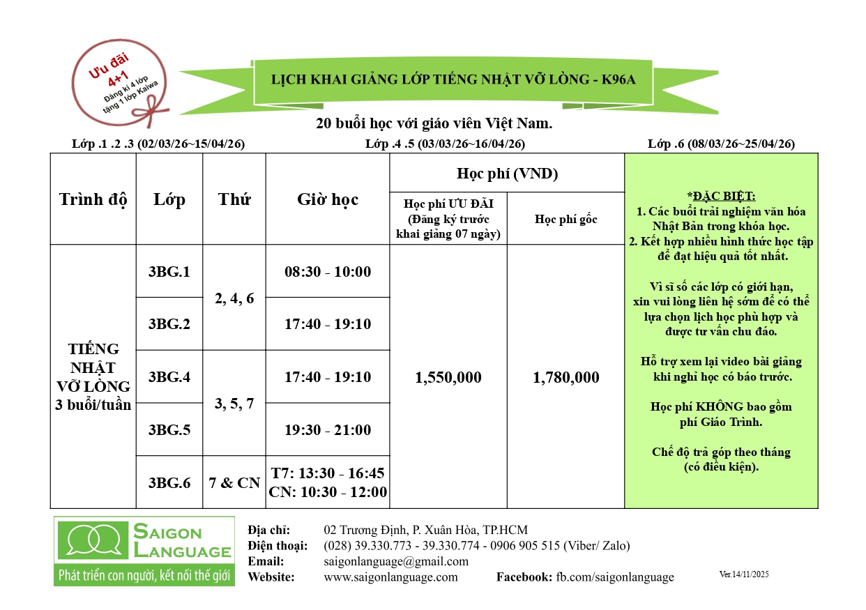 Khai giảng lớp Tiếng Nhật K95B (30/11, 3,4& 6/12/2025)(21,26&27/12/2025) TIẾNG NHẬT VỠ LÒNG, Sơ cấp,Trung cấp