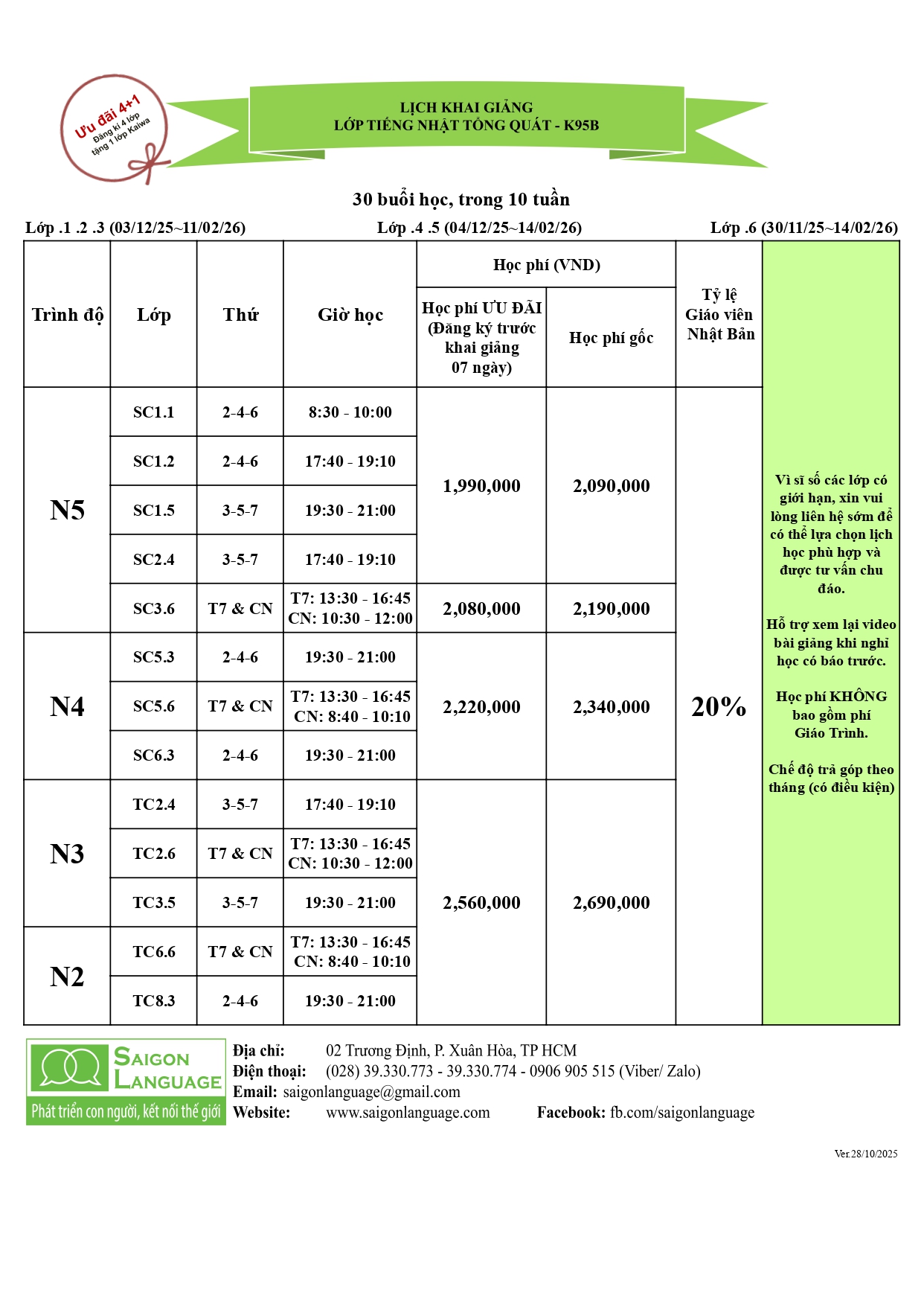 Khai giảng lớp Tiếng Nhật K95B (30/11, 3,4& 6/12/2025)(21,26&27/12/2025) TIẾNG NHẬT VỠ LÒNG, Sơ cấp,Trung cấp